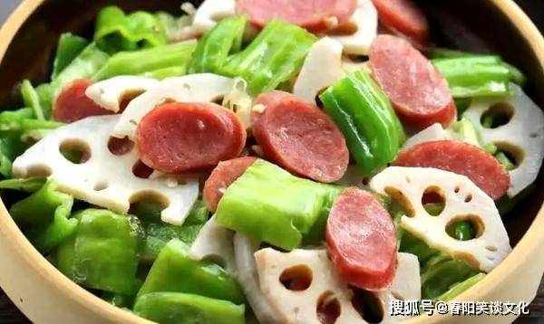 4将莲藕放入锅中翻炒两遍;5、放入青椒翻炒至稍微变色;