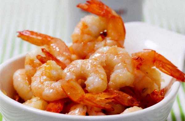 4、将腌制好的大虾放入40%的热油锅中炸至变红。取出炸好的虾,淋上红酒柠檬酱!