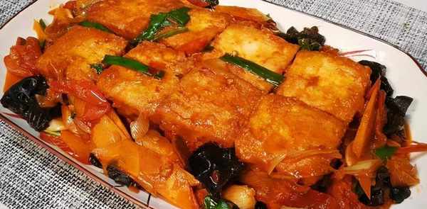 5、锅中加入少许植物油,将豆腐放入锅中,煎至两面焦黄,盛出。6、锅内留底油,加入葱姜蒜爆香,加入豆瓣酱翻炒。