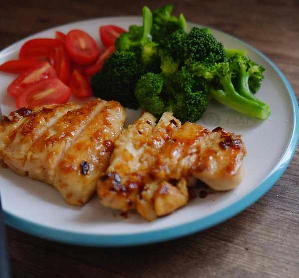 材料:大蒜4粒,鸡胸肉1块,黑胡椒粉适量,盐适量,蜂蜜适量,食用油两勺;