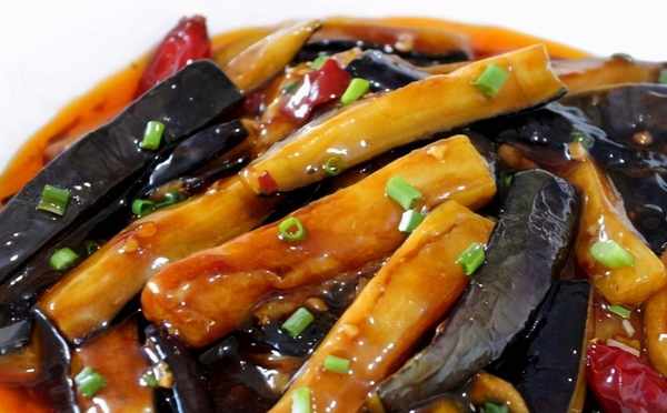 主要材料:长茄子三个,泡椒一个,葱、姜、蒜末一片、老抽1勺、醋2勺、盐3克、白糖3克、鸡汤2克、2花椒克,香油2勺,小葱少许...