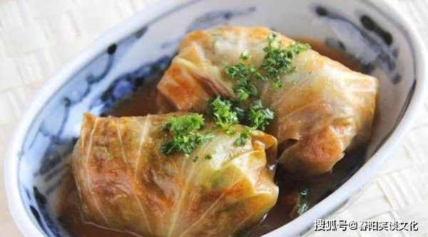 7、锅里放油烧热,倒入开水和淀粉,烧开后浇在菜卷上。
