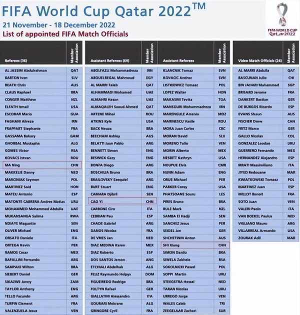 此外,我们不仅承建了世界杯主赛场卢塞尔球场,像蒙牛、万达、海信等我们厂商的身影也随处可见,就连我们大熊猫都已顺利抵达卡塔尔,一同目睹这一足球盛宴。足以见得本届世界杯,我们制造遍地都是。而本次代表我们出征卡塔尔世界杯的国人,虽然不是球场上健步如飞的运动员,但他却靠着红黄牌走向国际赛场,成为三十六位主裁判之一。他是谁?又凭何本事站在世界杯舞台呢?