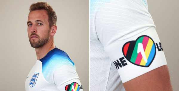 英格兰队长凯恩佩戴one love袖标。