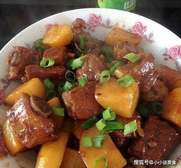 做法:1、新鲜带骨脆皮猪排切成3厘米长的块;土豆切成3厘米长的段,小葱切成4厘米长的葱段;