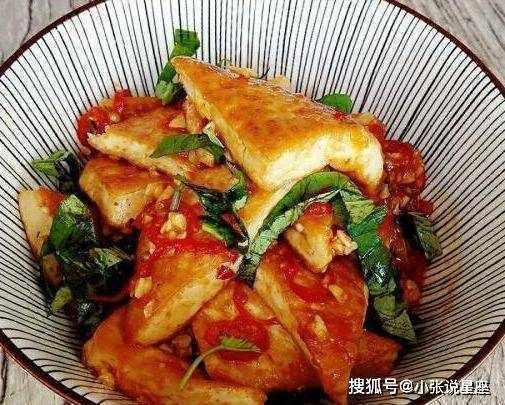 2、油热后,将豆腐块摆好,用小火煎。尽量不要碰它。菜籽油必须加热。否则会散发出一股生油味。不香!普通油不需要加热;