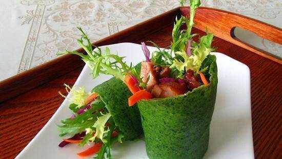 材料:鸡腿1条、菠菜2条、鸡蛋1个、苦菊适量、紫甘蓝适量、胡萝卜适量