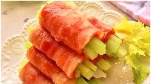 做法:1、芹菜去叶洗净用淡盐水泡一会,然后切成长条,比培根片长一点。