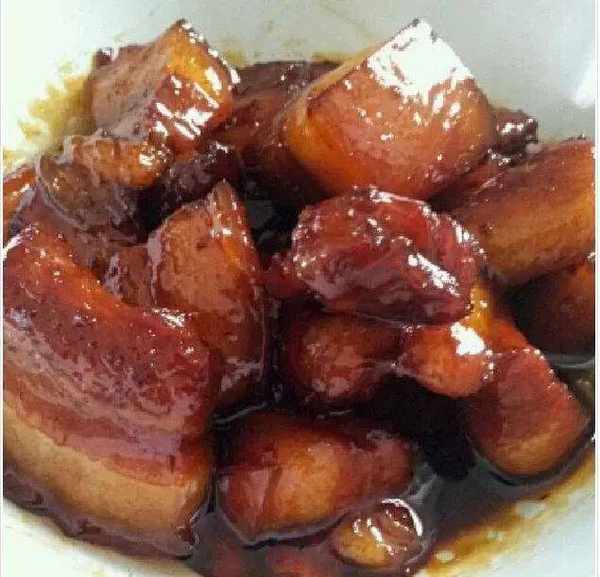 将肉洗净,切成方块。锅内加入适量的油,放入姜丝和八角爆香,然后将肉倒入锅中煮熟。将水炒干,加冰糖和老抽翻炒,加开水没过肉,加黄酒和香醋少许。用大火煮沸,然后转小火。浓稠的肉在汤里的颜色已经很漂亮了,肉质又软又粘。大约40分钟左右,加入少许盐和鸡精调味。在高温下收集果汁