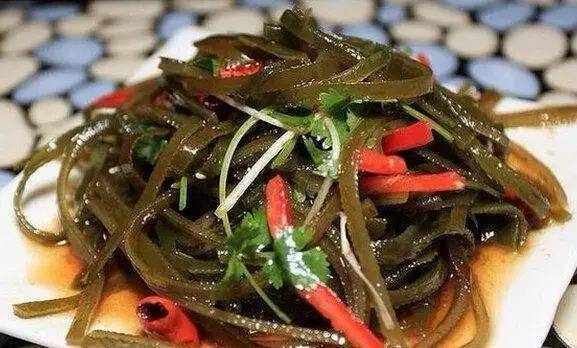 1.将泡发软的海带切丝,放入沸水中焯一下沥干水分