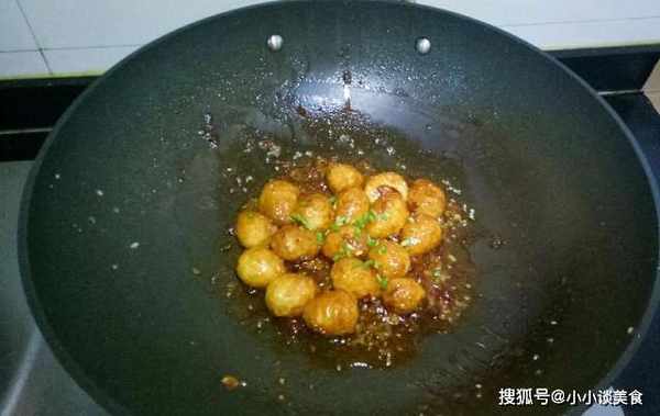 原料:鹌鹑蛋、大蒜、豆瓣酱、白糖、水淀粉、白芝麻、葱花、油。练习步骤: