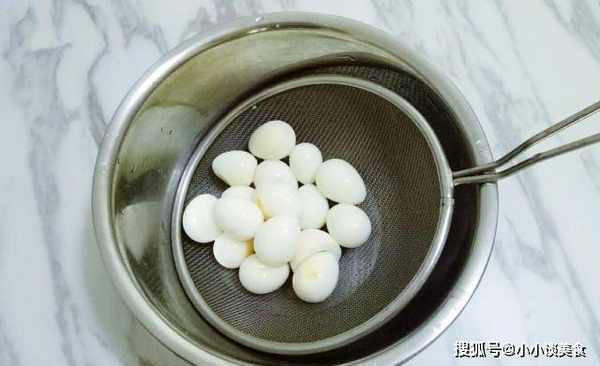 第一步:将鹌鹑蛋洗净,锅中倒入适量清水,放入鹌鹑蛋煮开后捞出放入冷水中,去壳备用。