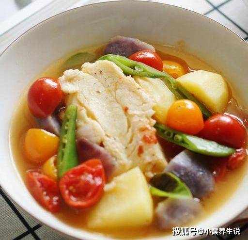 成分:鸡汤、红洋葱、圣女果、小土豆、土豆、罗勒、粗盐、现磨黑胡椒、鳕鱼片、豌豆、柠檬汁、橄榄油