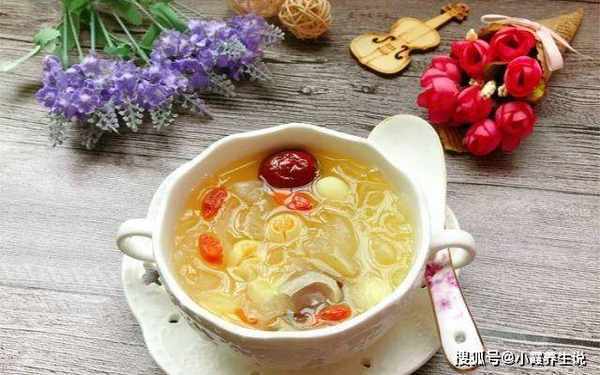 【原料】银耳适量、莲子适量、红枣适量、枸杞适量、黄冰糖适量