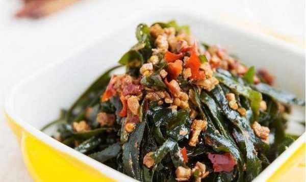 4、再加入葱花和香菜末,关火,加入盐和鸡精即可食用;喜欢吃辣椒的可以在炒海带丝的时候加入合适的辣椒酱,味道确实不错。