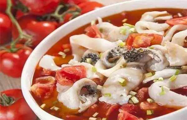 做法:1、乌鱼洗净,取干净带皮的鱼,切成薄片,放入碗中,加盐、料酒、胡椒粉、蛋清、生粉调味。另外,将西红柿洗净,用炭火烤一下,去皮切块。