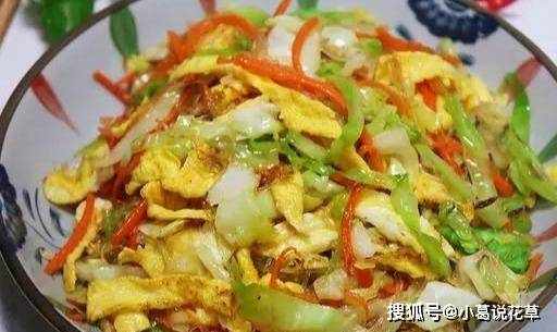 3、热锅倒入适量油,加入胡萝卜和白菜炒软,加入粉丝继续小火4分钟,然后倒入鸡蛋,同上法炒熟。起锅烧热,淋上生抽,加等量盐炒熟即可。