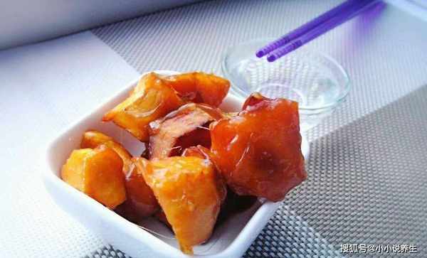 4.等到红薯熟了,外层的脆皮就可以去掉沥干