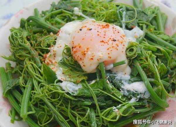 5.取准备好的盘子,上面放上芦笋,调好的酱汁,上面放一个温泉蛋,最后撒上七味粉。