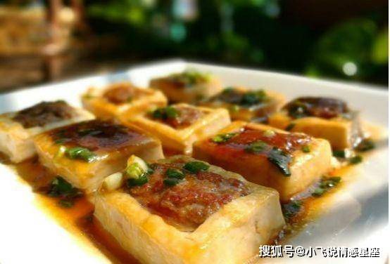 做法1、豆腐切成大方块,用勺子挖出小坑。