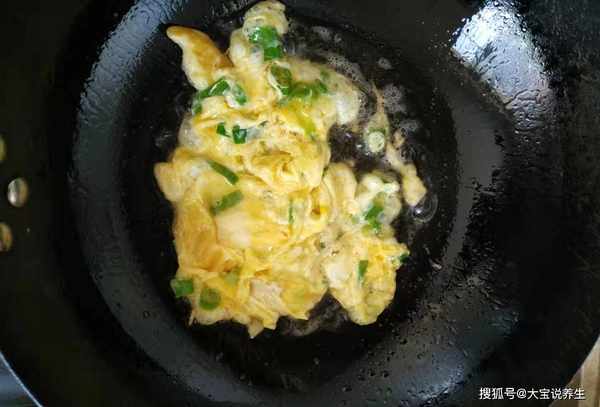 3、炸好后加入生抽、五香粉和盐翻炒几下,放入煎好的鸡蛋;