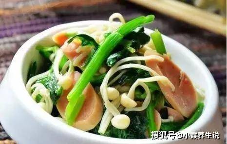 配料表:菠菜、金针菇、火腿肠、橄榄油、盐、葱姜、糖、鸡精、水淀粉