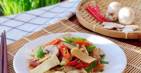 实践:1、冬笋、香菇、火腿切片,青蒜切片,青红椒切片。