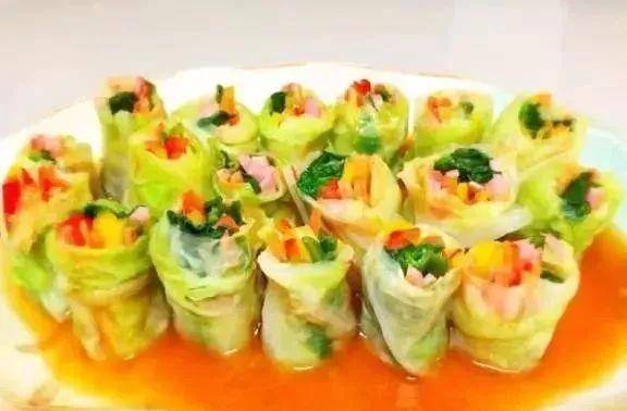 材料大白菜3片/菠菜30克/红萝卜50克/彩椒50克/盐1茶匙/鲍鱼汁1茶匙/白糖适量/水淀粉1汤匙