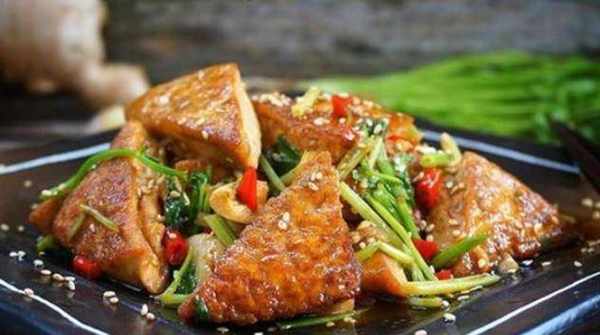 2.将油倒入锅中。油热后,放入豆腐块,小火炸至表面金黄备用;3.锅内留底油,加入蒜粒和小米椒爆香,下豆腐,再加入白糖、白胡椒粉、生抽和半碗啤酒,中小火慢炖直到水几乎减少。半小时后,翻身继续。半小时后,放入芹菜块、盐,转大火收汁,关火,加入少许鸡精,撒上煮熟的白芝麻。