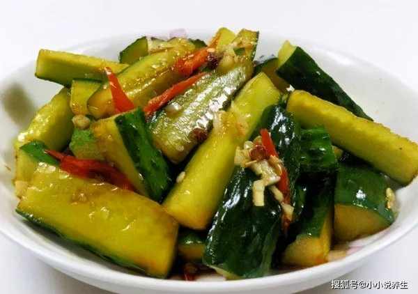 3、黄瓜洗净,切成细丝。如果选择较小的萝卜,可以将其洗净去皮后切碎。青菜用热水烫一下,然后切块;