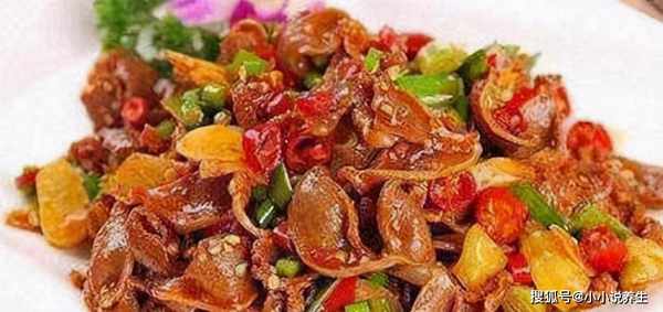 材料:鸡肠若干,鸡心若干,油2汤匙,盐少许,鸡精少许,生抽适量,料酒适量,干红辣椒7-8个,小米5-6粒.辣椒、泡椒10个、花椒少许、姜、蒜少许、球茎5个~