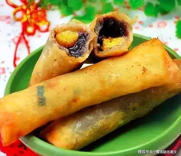 6、小火慢炸至春卷金黄。9)捞出沥油即可装盘食用。