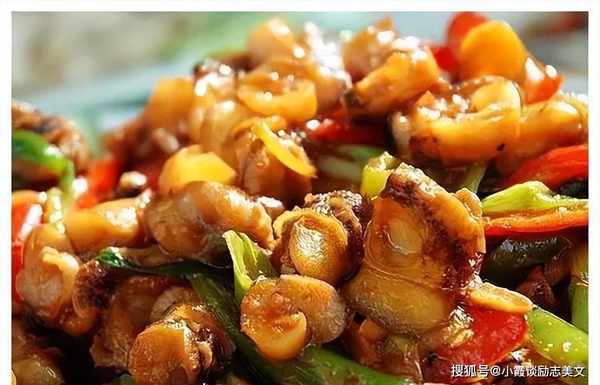 5、放下海螺肉快炒,放入调味汁煮3分钟,汁水变稠时放葱即可。