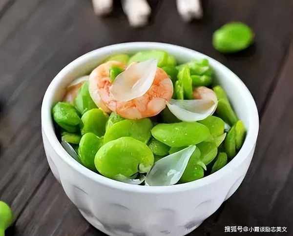 材料:蚕豆,明虾,新鲜百合,盐,白胡椒粉,料酒,白糖,香麻油