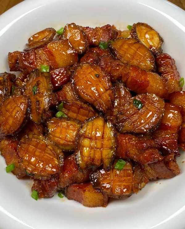 四【鲍鱼红烧肉】鲍鱼脆嫩的口感,和肉一起烧,别有风味。大年初五财神日,要有鱼有肉,要鲍鱼,爆余,非常吉利。