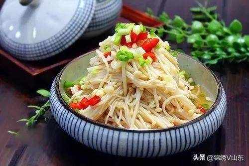 食材:金针菇、酱油、黑醋、小米椒、干辣椒、葱、蒜