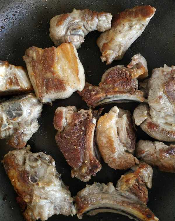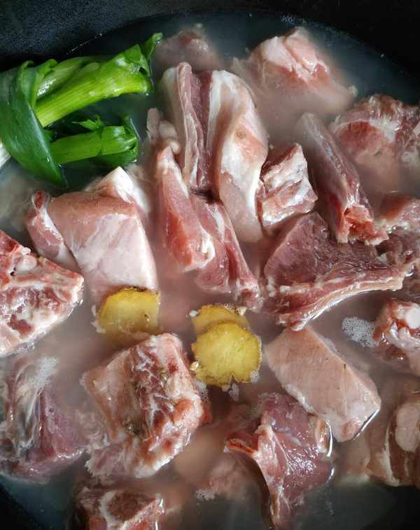 操作方法:1、将洗净的排骨焯水,加入葱、姜片和料酒去腥,水开时起沫;