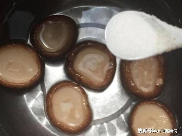 2、撒糖让香菇吸水更快,面粉用来吸走香菇里面的泥土。