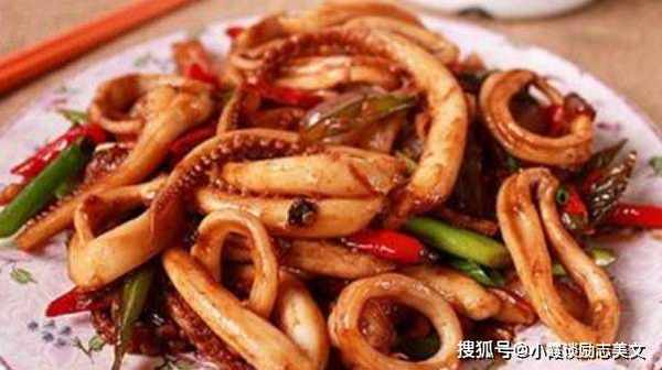 材料:鲜鱿鱼2条,郫县豆瓣一汤匙,干红辣椒20个,姜2片,【调料】:糖,料酒