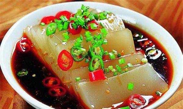 做法步骤:1、猪皮洗净,用开水烫一下,捞出,用刀刮掉肉附近的油脂,一定要刮干净,否则会影响形状和口感这肉。皮肤凝胶;