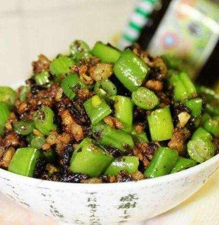 青豆配碎猪肉和橄榄菜