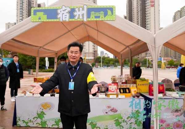宿州的美食展位被洁白的梨花装点得清新脱俗,碗盆里的龙湖醉鱼、萧县羊肉汤热气腾腾,又增添了许多烟火气。鱼鲜飘香中,宿州市文化和旅游局局长李伟郑重地向省内外游客发出了“满树梨花开,相约在宿州”的春季邀约。