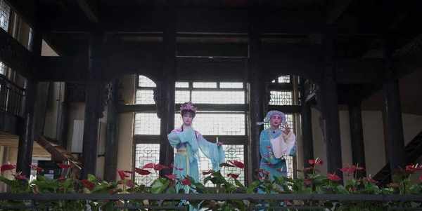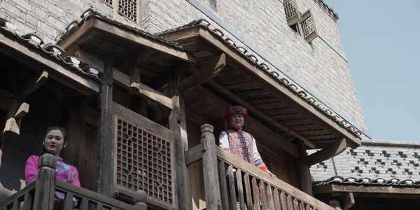 吊脚楼上,土家民间歌手正用充满民族唱腔的男女对唱吸引着往来游客的目光。