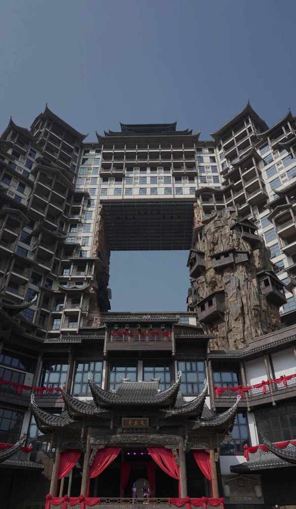 七十二奇楼是全球唯一一栋以土家吊脚楼为建筑形态的超高层大楼,高度达109.9米的主楼,是我们最高单体民族建筑,也是全世界最高、最大、最壮观的土家民族建筑,曾在2023年成功申报吉尼斯世界纪录。