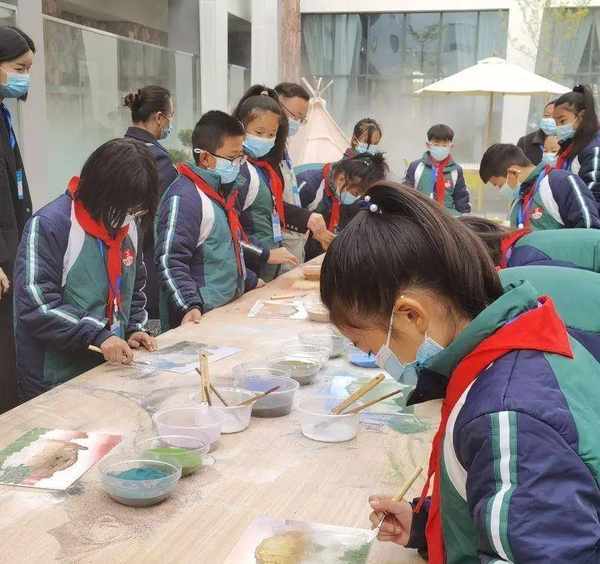 如今,经过7年发展,军声砂石画文创产业基地可为亲子游顾客提供砂石画作品参观、艺术研学体验等服务。
