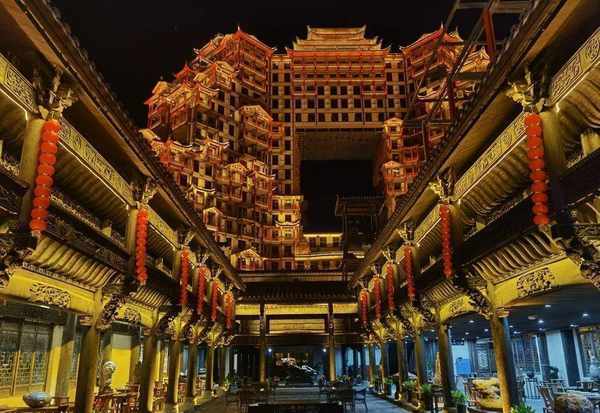 当暮色降临,穿过古老大门步入奇楼之中,光彩夺目的灯光下,各种美食小吃令人目不暇接。