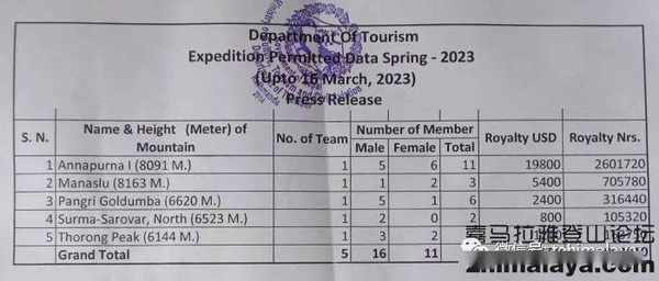 尼泊尔旅游局公布了春季登山者首份攀登许可名单。最初看起来,情况颇为令人失望:仅有27名外国登山者,不过,数字不尽人意的原因主要是因为大部分探险团队尚未签到,其中包括全部珠穆朗玛峰和洛子峰团队。