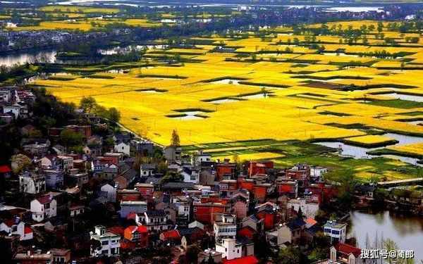 金黄的油菜花铺天盖地、汹涌澎湃,蔚然壮观,没有人能不被这万亩花田惊艳。