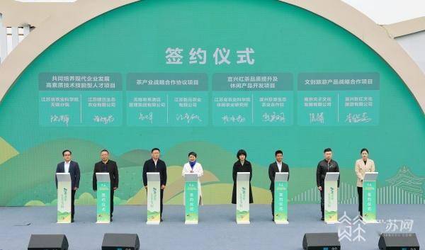 活动现场,江苏省茶叶研究所与阳羡生态度假区(张渚镇)签订茶叶科研生产技术服务项目协议,江苏省农业科学院休闲农业研究所与宜兴珍香生态茶业合作社签订宜兴红茶品质提升及休闲产品开发项目,南京林业大学与江苏九香茶业有限公司签订产学研合作项目……这些战略合作协议、产学研一体化合作协议、项目合作协议的签订,将为阳羡生态旅游度假区茶产业发展注入新活力。