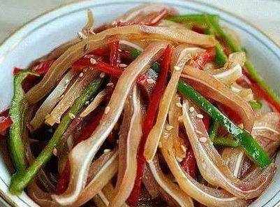主要原料:猪耳朵、青椒、红椒、糖、酱油、香醋、红油、熟芝麻。做法:1、将煮熟的猪耳片去油,切成薄片;